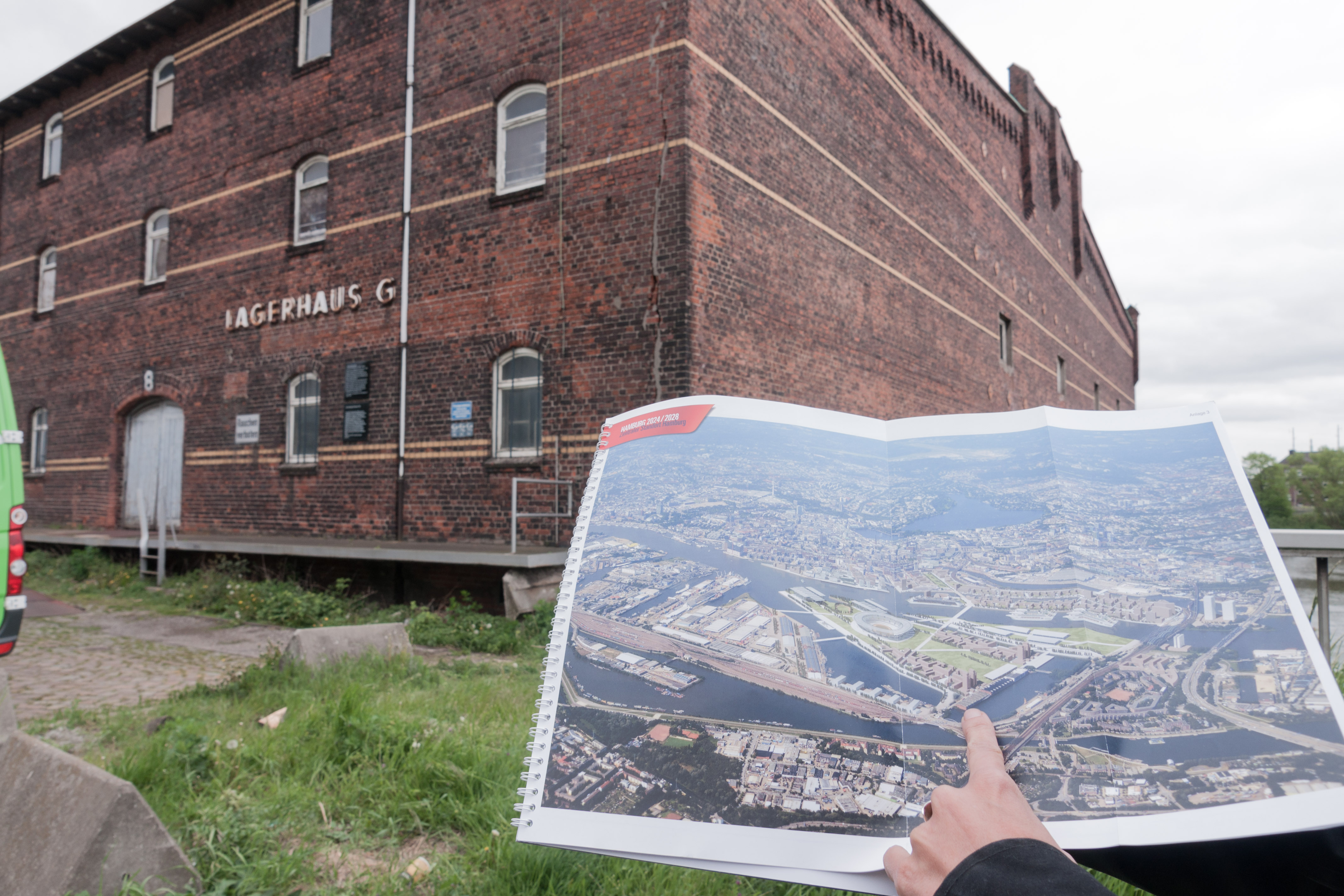 Eine ungewöhnliche Antwort, schließlich beschäftigt sich das Planer- und Architektenkonsortium seit April mit dem Masterplan zum Kleinen Grasbrook und sie hatten genug Zeit, um über „Heliumballons mit abgehängter Aussichtsplattform“ über dem Gelände nachzudenken, aber nicht darüber, wie sie den Gebäuderiegel, in dem sich das KZ-Außenlager befand, in das „olympischen Kerngelände“ einbeziehen können? Dabei soll der Masterplan im September fertig erstellt sein und das Lagerhaus G liegt in zentraler Eingangslage zum Gelände.